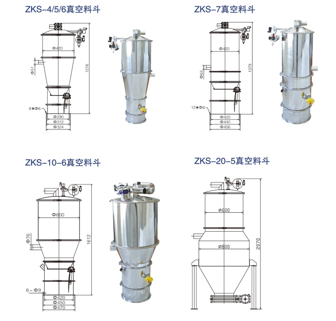 真空加料機由真空泵(無油、無水)、真空料斗、過濾器(有聚酯覆膜過濾器、PE過濾器、316L不銹鋼過濾器或鈦金屬過濾器多種選擇)、壓縮空氣反吹裝置、氣動放料門裝置、料位自動控制裝置、不銹鋼吸料咀、輸送軟管等組成,整套系統設計合理、制造精美。