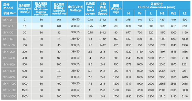 ? 容器有效裝載率達80%,混合時間短,效率高,(普通混合機僅40%);