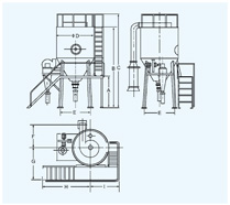 空氣經過濾和加熱,進入干燥器頂部空氣分配器,熱空氣呈螺旋狀均勻地進入干燥室。料液經塔體頂部的高速離心霧化器,(旋轉)噴霧成極細微的霧狀液珠,與熱空氣并流接觸在極短的時間內可干燥為成品。成品連續地由干燥塔底部和旋風分離器中輸出,廢氣由風機排空。